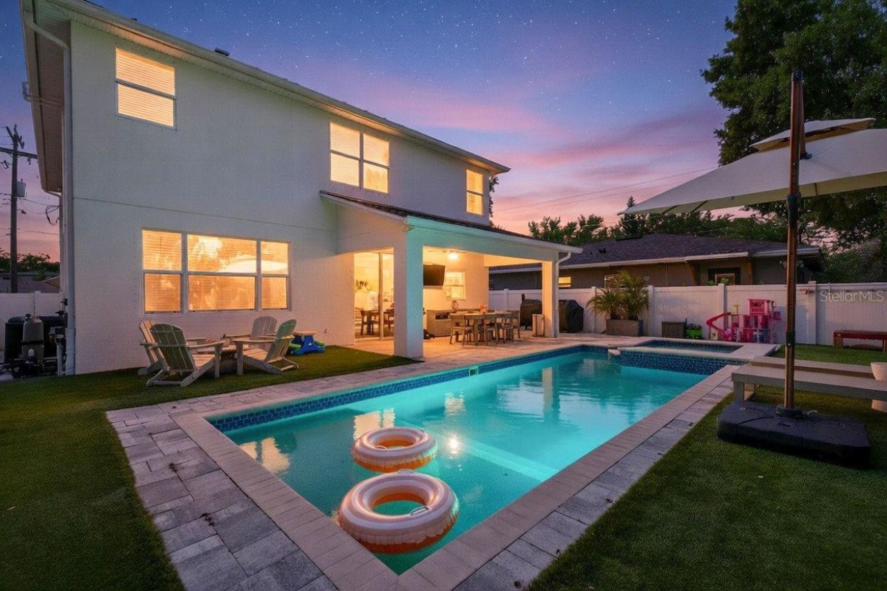 Welcome to 1031 W Alfred St in the highly sought-after Riverside Heights neighborhood! Built in 2020, this 'better than new 4BD/2.5BA home offers nearly 2,500 sq ft of thoughtfully upgraded living space with a light, modern coastal feel throughout. Situated in a high and dry location with no flood insurance required, this home offers added peace of mind and long-term savings.The first floor features wood-look tile flooring and an open-concept layout filled with natural light. The gourmet kitchen is a true centerpiece, featuring a large island, quartz countertops, stainless steel appliances, farmhouse sink, and abundant cabinetry. It flows seamlessly into the spacious living area with custom built-in shelving for both style and functionality. A front flex room with designer millwork and rich accent tones is ideal for a home office, playroom, or sitting area.Upstairs, LVP flooring runs throughout, along with generously sized bedrooms and a spacious primary suite. The primary retreat features tray ceilings, a custom walk-in closet, and a spa-like bathroom with dual vanities, soaking tub, and glass-enclosed shower.Step outside to your private backyard retreat with a heated saltwater pool and spa, paver patio, oversized covered lanai, and low-maintenance turf-perfect for entertaining or relaxing year-round. Fully owned solar panels power the home and pool heat pump, offering excellent energy efficiency and significant monthly cost savings.Additional upgrades include custom closet systems throughout, fresh interior paint (2025), new washer/dryer (2025), new dishwasher (2025), updated powder room vanity (2025), garage storage shelving, EV charging outlet, HVAC UV light air purification system, full exterior pressure wash (2026), and new sod/landscaping (2025).Located just minutes from numerous parks, the Riverwalk, downtown Tampa, restaurants, shops, and Armature Works, this home offers the perfect blend of neighborhood charm and urban convenience.