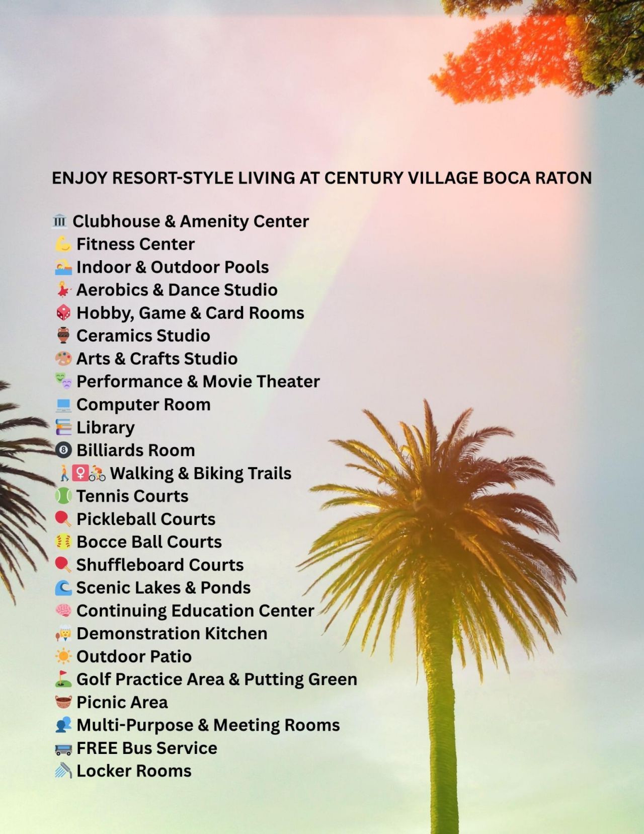 FULLY FURNISHED TURN KEY + 50% OFF FIRST MONTH! 55+ community. Water & cable included | Up front parking | Just bring your personal belongings and settle right in! Beautiful Two bedroom Two bath condo with updated kitchen and baths. Enjoy the tons of activities and amenities of the community including 125,000 square foot clubhouse | 12 tennis courts | 12 shuffleboard| bocce ball courts | 8 Pickleball courts| 1,250-seat theater | free bus service | outdoor pool | additional 13 satellite pools spread across the community. Endless options for shopping ,restaurants and entertainment. Responsive and caring Landlords! Just Bring Your Toothbrush (we might even have that covered ). Available immediately. You will love it here! Hurry before this is gone!