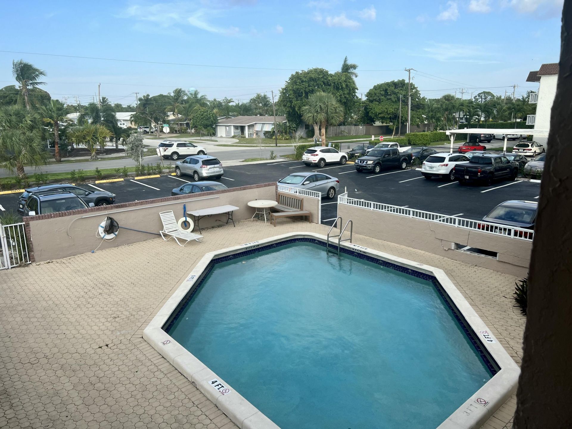 only TWO MONTHS to MOVE IN! Perfect EAST Deerfield Beach location right on Federal Hwy! TWO LEVEL condo is available for rent! Second floor CORNER unit with EXTRA windows, both bedrooms are situated on the second level . Open kitchen, LARGE BALCONY, NEW AC unit. Situated just west of the route 1 , it's a walking top distance to stores, restaurants, fitness clubs, and a quick drive to the BEACH or the HIGHWAY. Small BOUTIQUE garden community with a community POOL and a common laundry. PETS are welcome. WASHER and DRYER HOOKUPS available!