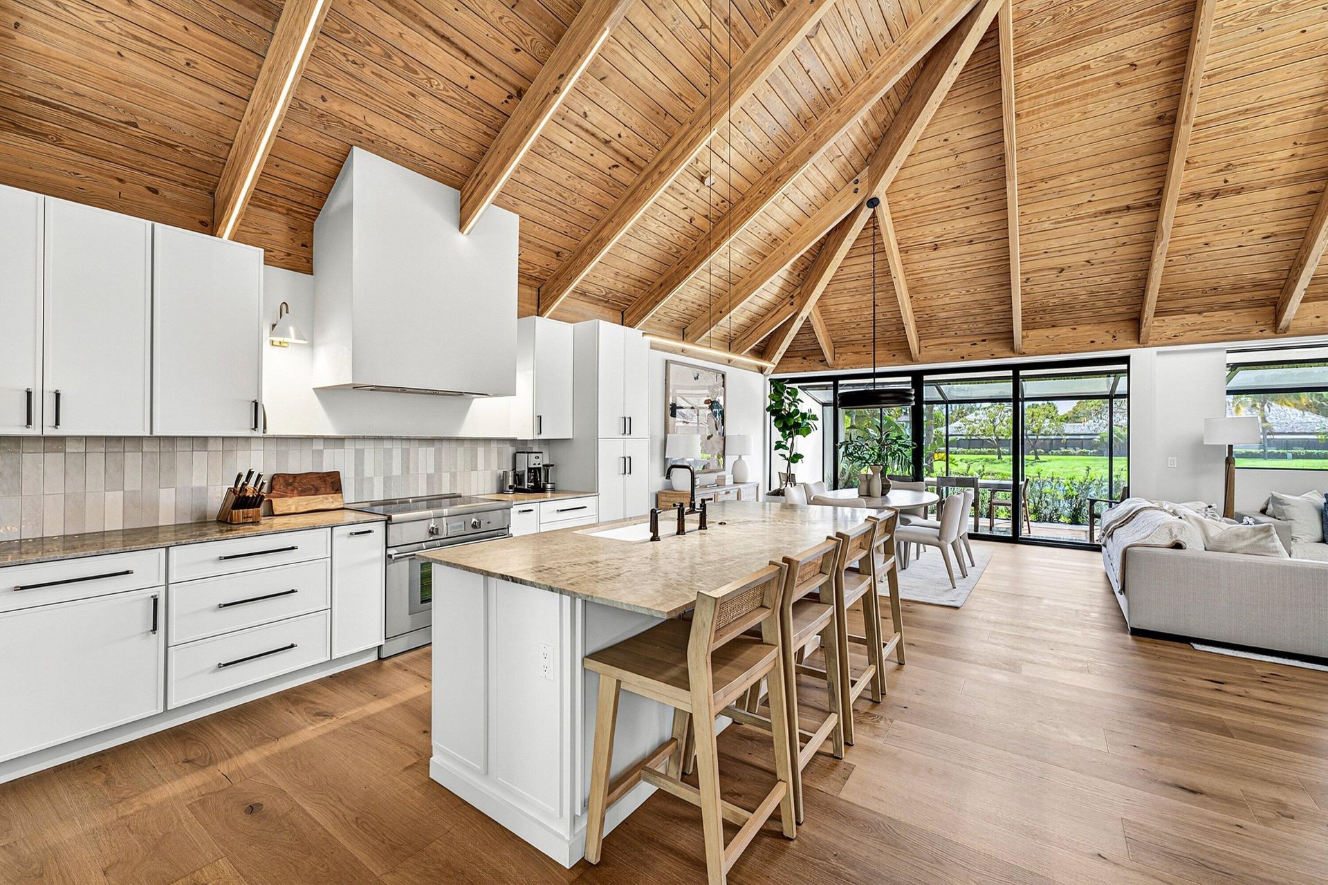 Available for off season rental, this completely renovated bungalow in Palm Beach Polo blends timeless charm with modern elegance, featuring beautiful wood floors and soaring vaulted ceilings that create a light and airy atmosphere throughout. The spacious kitchen is a true showpiece with stunning stone finishes and a large center island, complemented by a generous laundry room offering abundant storage. The property also has an oversized fenced yard and an additional covered patio, all set against a backdrop of mature landscaping and tranquil lake views, making it ideal for both relaxing and entertaining.