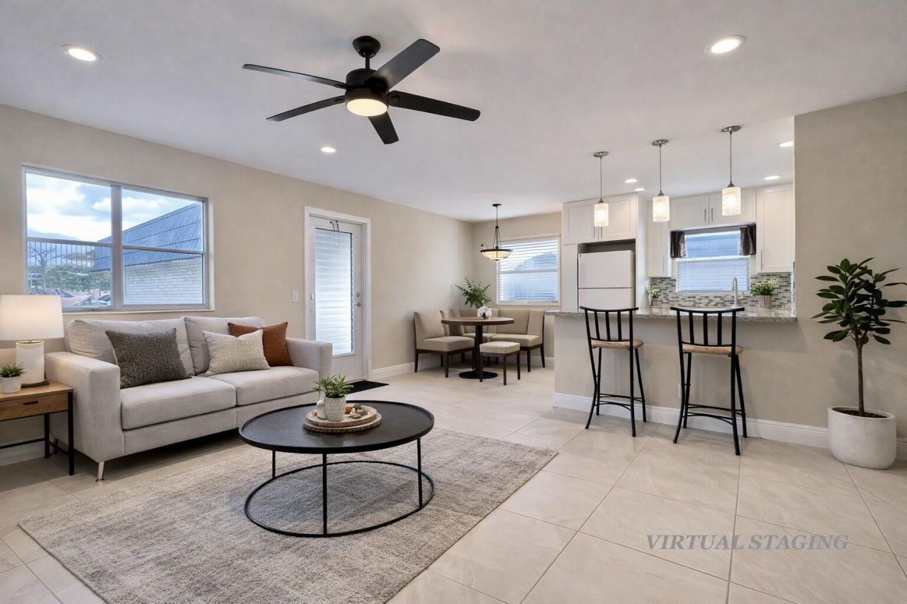 2/2 IN DESIRABLE 55+COMMUNITY. Renovated residence offers modern open concept, updated kitchen, tile throughout. A/C 2023. Easy access with an elevator to the 2nd floor, assigned parking space conveniently right outside the unit. Enjoy playing golf at your door steps and take a short, pleasant walk to the clubhouse. Impressive array of amenities including multiple outdoor pools, indoor pools, two 18-hole golf courses, fitness centers, tennis, pickleball, on-site dining, movie theater, performance theatre, group events, classes, shuttles-all without membership fees. Get ready-you'll never have time to be bored here. Minutes from Atlantic Avenue with exceptional dining, shopping, entertainment. Short drive to the most beautiful beaches. This is a lifestyle opportunity you won't want to miss.