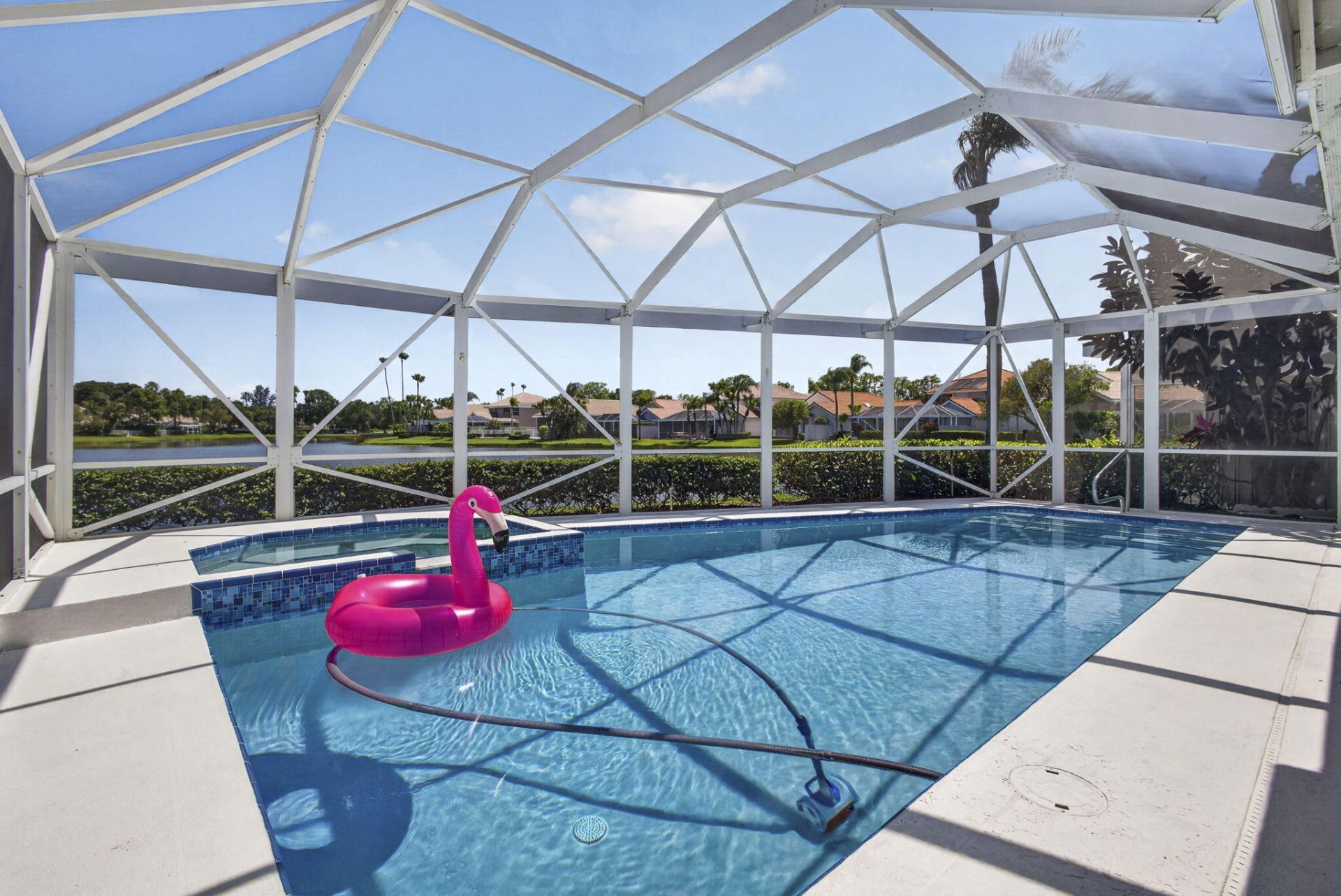 Tucked inside the exclusive, gated enclave of Eagleton Lakes at PGA National, this highly desirable single-story waterfront residence showcases breathtaking long lake views and a stunning 2021-renovated pool with an expansive wraparound covered and screened lanai, ideal for entertaining. Meticulously maintained triple split floorpan with a spacious kitchen features a 2024 stainless steel refrigerator & 2024 SS dishwasher, while a 2023 generator & full accordion shutters offer complete hurricane protection. Move right in to this home, which is filled with natural light, soaring ceilings, and oversized sliding doors that create a seamless indoor-outdoor living experience. PGA National offers optional memberships with no mandatory requirements. Don't miss this one!