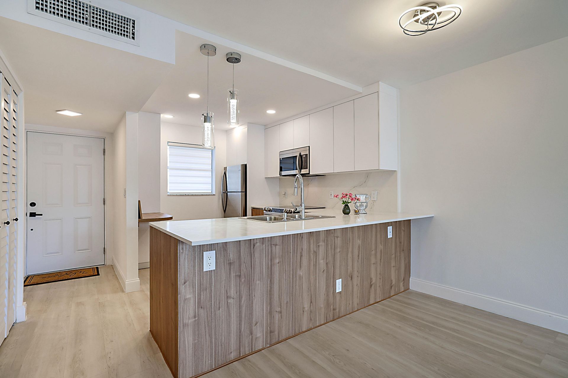 Welcome home to this completely remodeled, move-in ready 1-bedroom, 1-bath residence, thoughtfully redesigned from top to bottom with quality and comfort in mind. From the moment you step inside, you'll appreciate the beautiful laminate flooring and a stunning custom Italian-designed kitchen featuring stainless steel appliances, quartz countertops and elegant finishes throughout. This home offers a spacious walk-in closet and the peace of mind that comes with fully updated electrical and plumbing systems, so you can simply move in and enjoy. Ideally located just steps from the clubhouse, you'll have easy access to resort-style amenities including a heated pool, fitness center, tennis and pickleball courts, sauna, and a full calendar of social activities year-round. Set within Holiday Springs, a quiet and beautifully maintained community with no rentals allowed, this is the perfect place to enjoy a relaxed, peaceful lifestyle while still being close to shopping, dining, and medical services. Start your next chapter in sunny Florida-where comfort, community, and convenience come together beautifully.