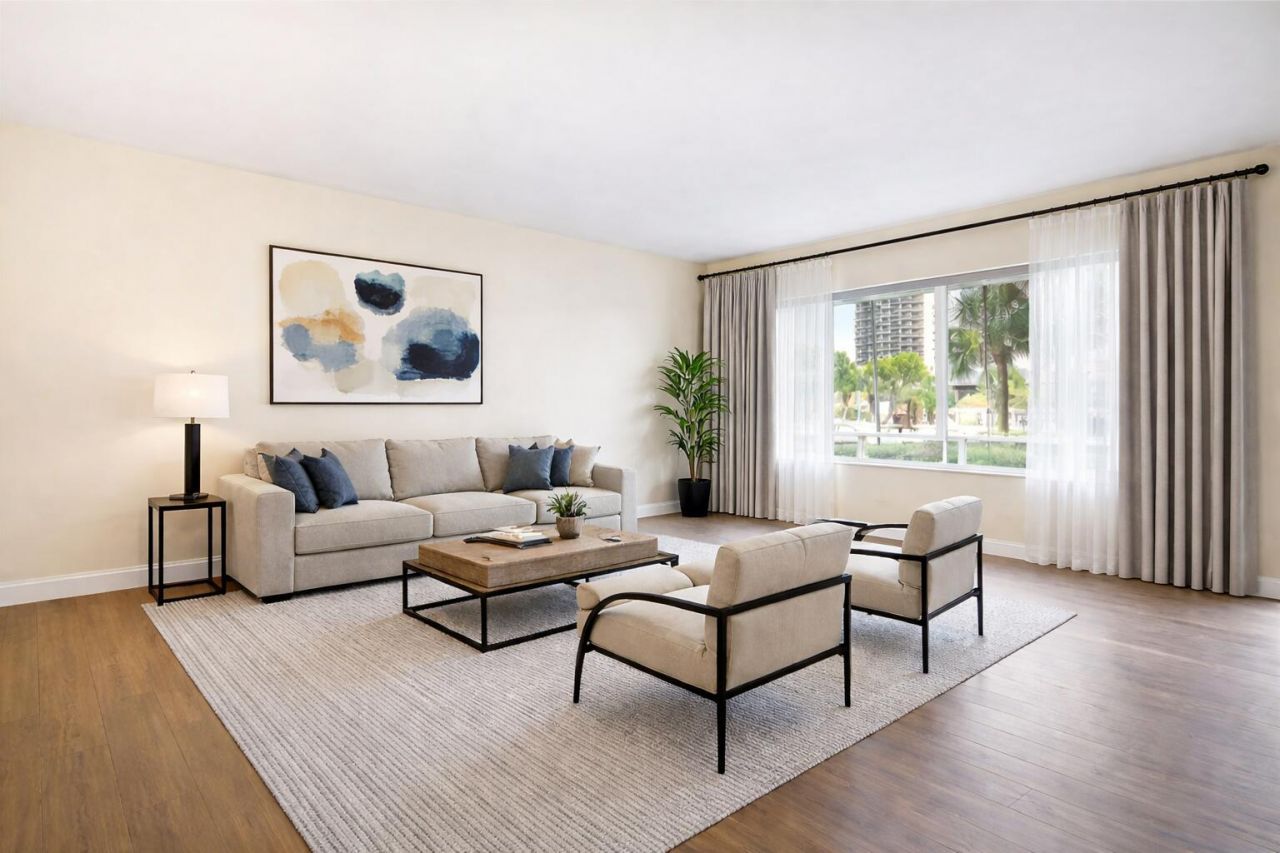 Don't miss this fantastic opportunity to live in a beautifully renovated 2 bed/2 bath unit in Country Club Tower. This move-in ready home features tile floors in the living/dining area, wood floors in the bedrooms, brand-new impact windows, a new A/C, new water heater, a new washer and dryer in the unit, an open floor plan, lots of natural light, an open eat-in-kitchen with SS appliances and granite countertops. Bathrooms are also remodeled and retiled. Plus a covered parking spot. As a resident you'll also have access to the community pool, which overlooks a picturesque golf course with a waterview. The location is unbeatable! You can easily bike to the beach and LBTS which is just 1.5 miles away. Plus nearby shopping, dining, entertainment, grocery, banks, movies and mall.