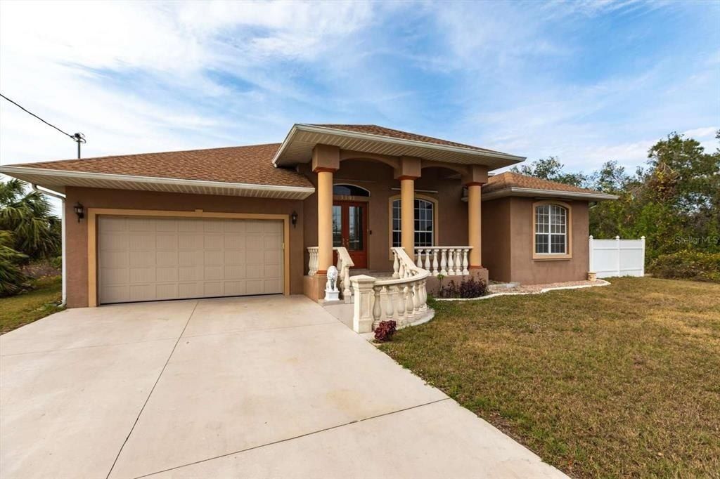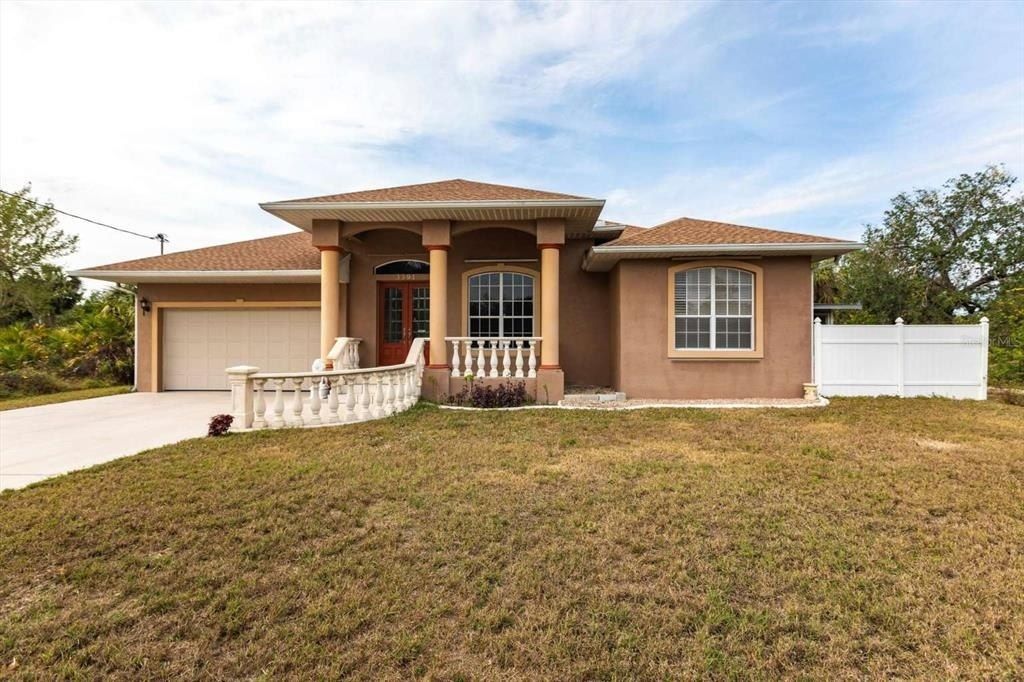 Welcome to the waterfront lifestyle at this sailboat canal-front pool home with dock and Gulf access! Owner financing possible. This is a custom designed home with a spacious split-floor plan. The large elevated front porch leads into a breathtaking foyer bosting 13ft. ceilings to welcome visitors and family alike. At over 2,200 square feet & 9 1/2 ft. ceilings throughout main living areas, this beautiful home has three separated bedrooms each having an en-suite bath and walk-in closet. A large living room will bring your family together for camaraderie or just watching your favorite show. A separate formal dining room with outdoor access is ready for entertaining or a quiet dinner in. Sliding doors from the dining room lead to a lengthy dog-run any furry friend will enjoy! The kitchen features floor-to-ceiling cabinets, beautiful granite counters, decorative backsplash, and a large breakfast bar amongst many other features. The family room has triple pocket sliders providing direct access and beautiful view to the enormous screened pool area and covered patio oriented for picture perfect sunsets. You will have a hard time finding a larger pool deck for entertaining. This home is stem wall construction, newer garage door, hot water tank, and A/C. New roof completed 2025! This home offers a perfect atmosphere for hosting your next holiday celebration or simply enjoying quality time with family. The quiet neighborhood is close to shopping and dining, and the Charlotte Sports Park. Approximately 1/2 hour to the areas of Englewood Beach, Stump Pass Beach, and Gasparilla Beach. Fifteen minutes to Historic Downtown Punta Gorda, Fisherman's Village, and the brand new premium Sunseeker Resort.
