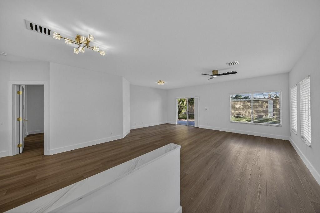 Step into this fully renovated 3-bed, 2-bath corner-lot home where timeless elegance meets modern luxury. Reimagined top to bottom, it shows like a brand-new build with no detail overlooked. Rich wood-grain, water-resistant flooring flows throughout. The designer kitchen features quartz countertops, stainless steel appliances, soft-close cabinetry, and bold gold hardware. Spa-inspired baths offer LED mirrors, marble-style tile, gold rainfall fixtures, and a double-sink primary vanity. Enjoy heated pools, pickleball, fitness center, two clubhouses, 24-hour security, and a boat-friendly lake. HOA covers roof and lender-required insurance.