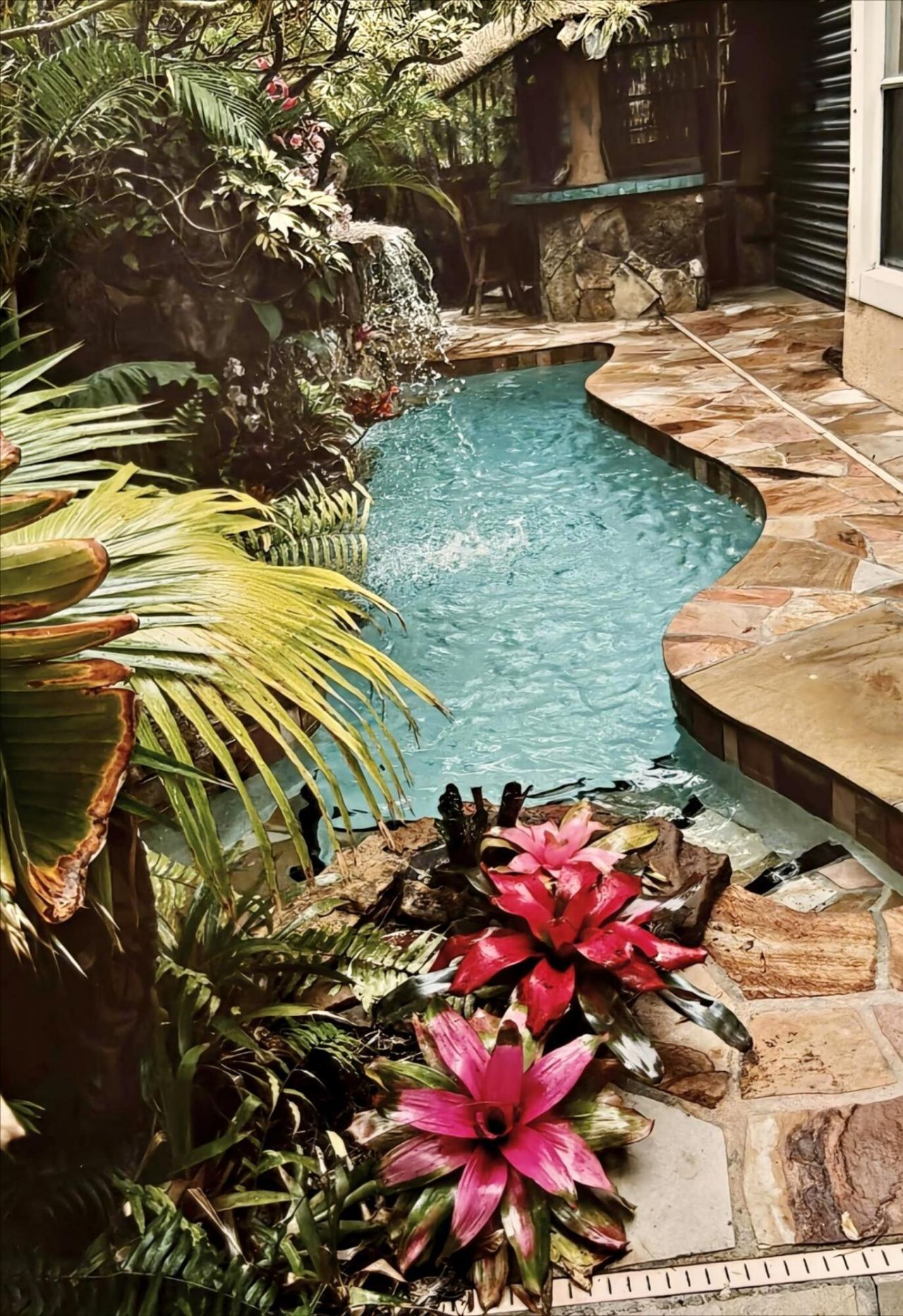 Welcome to your tropical paradise in the exclusive and highly sought-after Heron Bay of Parkland! Home features three bedrooms, two full bathrooms, a two-car garage. Custom one-of-a-kind 24' x9' waterfall pool oasis with grotto cave, 3x waterfalls, custom low-maintenance landscaping throughout and a concrete roof tiki bar with BBQ and fridge perfect for entertaining! View the colored LED lit waterfall oasis from the living room, kitchen, primary bedroom and 3rd bedroom! Corner lot, Vaulted ceilings. Separate laundry room. Amazing community for families- gated, beautiful pools, fitness center, pickleball, tennis, outdoor playgrounds, natural lakes galore, ballroom, business center, full appliance stocked outdoor kitchen/bar area at main pool. Low HOA! Agent accompanied showings