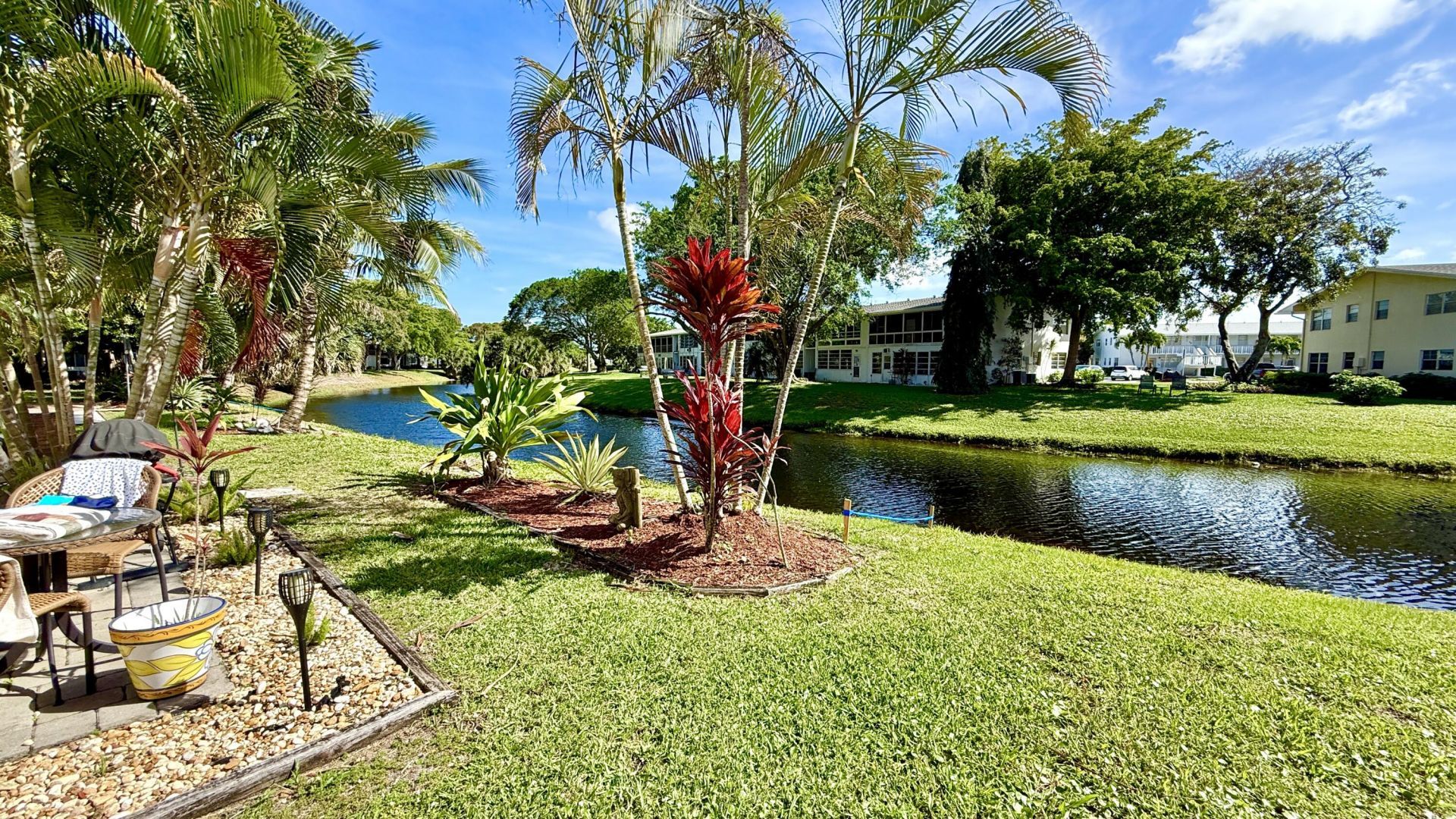 Enjoy Wonderful Canal View in a 1st Floor 1 BR, 1 Bath. Lovely open kitchen plan, tile throughout, enclosed patio with window AC. Association allows owners to build outdoor patio. 585 SF. Replaced Bathroom vanity. Partially Furnished. Come see what this condo has to offer. It is ready for you to make it your Own. Waling distance to Lyndhurst community pool and main Clubhouse which has Indoor & Outdoor Pool, Restaurant, 1600 Seat Theater, Clubs, Classes, Billiards, Tennis, Pickleball, Volleyball, Ping Pong, Bocce Board, ShuffleBoard, Fitness Center, Hiking Trails, Putting Green, Bike Trails & more. Close to Beaches, Entertainment, Dining, Shopping. Association claims 55+ community. Approval required.